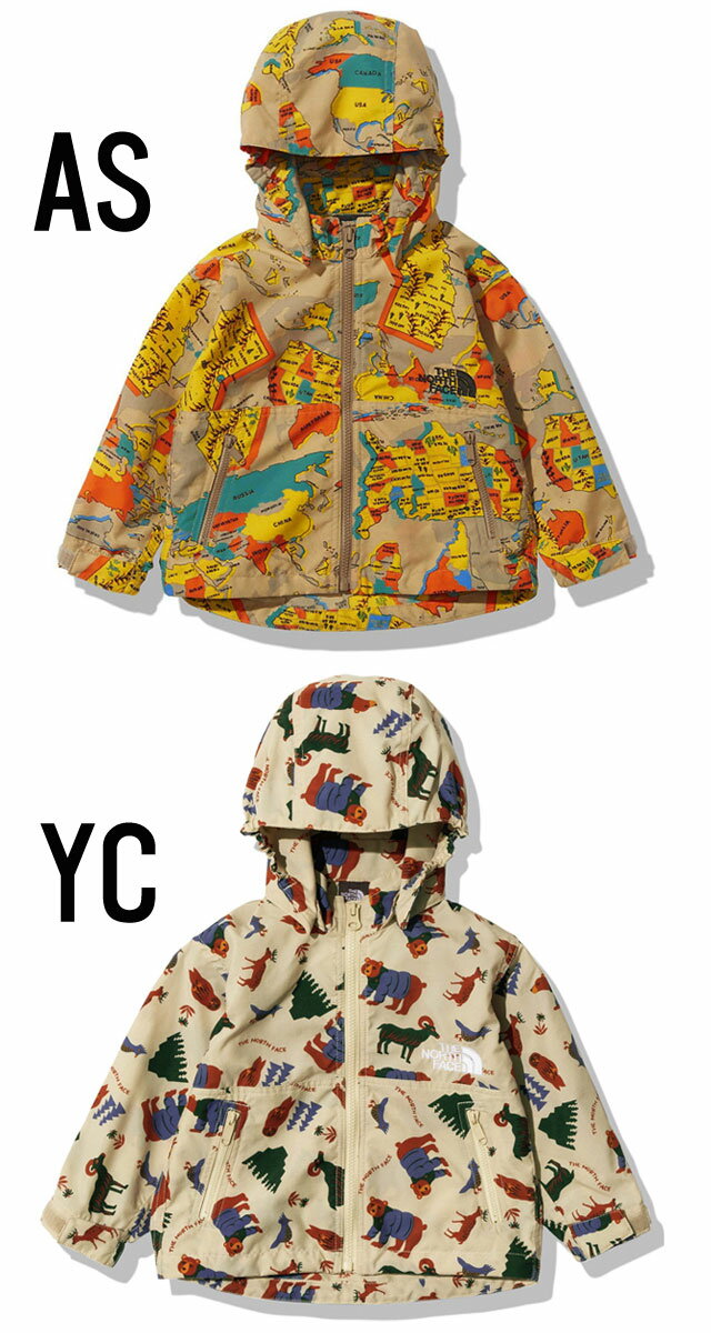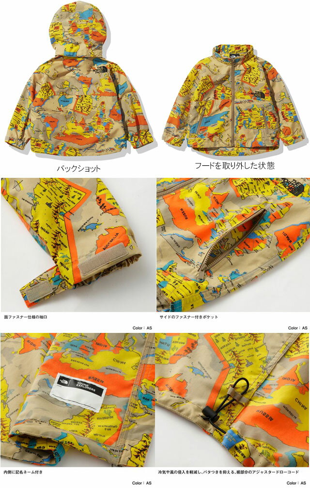 【あす楽】ザ・ノースフェイス THE NORTH FACE ウインドブレーカー キッズ ベビー ノベルティコンパクトジャケット パーカー フード アウター 男の子 女の子 子供服 トップス 上着 防寒 防風 撥水 地図 プリント アウトドア キャンプ 【送料無料】 evid