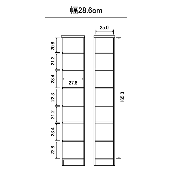 カラーナチュラル/ホワイト/ブラウン/ダークブラウン/ライトナチュラルサイズW28.6×D31.0×H178.0cm内 寸W25×D27.8cm(有効実寸)重 量16.8kg材 質プリント紙化粧繊維板塗 装ウレタン樹脂塗装特 長組立時間45分/2人移動棚板4枚、可動固定棚2枚耐荷重左の耐荷重基準値表を参照