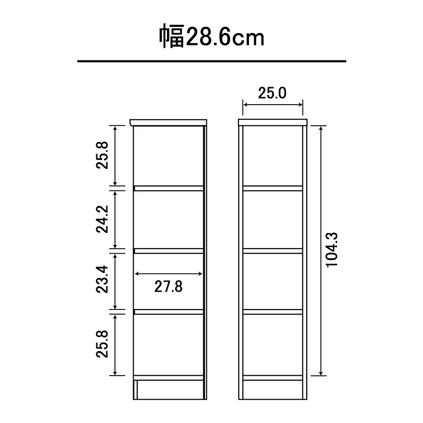 カラーナチュラル/ホワイト/ブラウン/ダークブラウン/ライトナチュラルサイズW28.6×D31.0×H117.0cm内 寸W25×D27.8cm(有効実寸)重 量11.2kg材 質プリント紙化粧繊維板塗 装ウレタン樹脂塗装特 長組立時間25分/1人移動棚板2枚、可動固定棚1枚 耐荷重左の耐荷重基準値表を参照