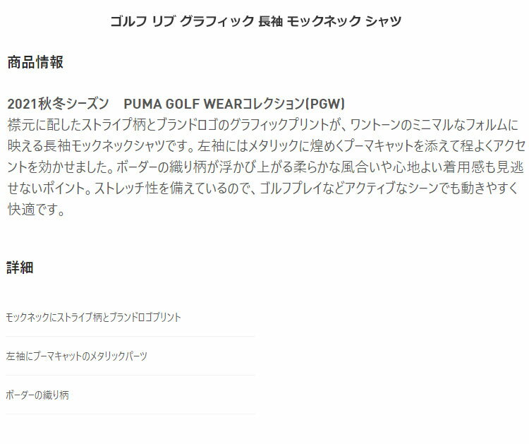 【30%OFF・セール・SALE】【日本正規品】秋冬 モデル PUMA GOLF プーマ ゴルフウェア 930328 リブグラフィック LS モックネック シャツ (メンズ)