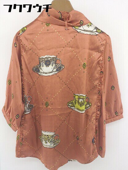 ◇ ◎ ●未使用● DOLL UP OOPS タグ サテン調 総柄 フリル 七分袖 シャツ ブラウス サイズ M ブラウン マルチ レディース 【中古】